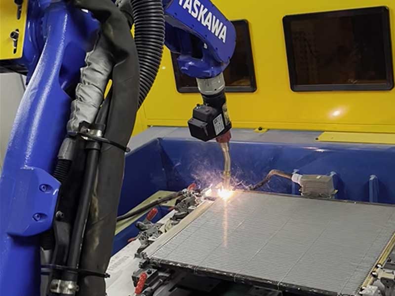 電池托盤(pán)封口板焊接機(jī)器人聯(lián)動(dòng)焊接