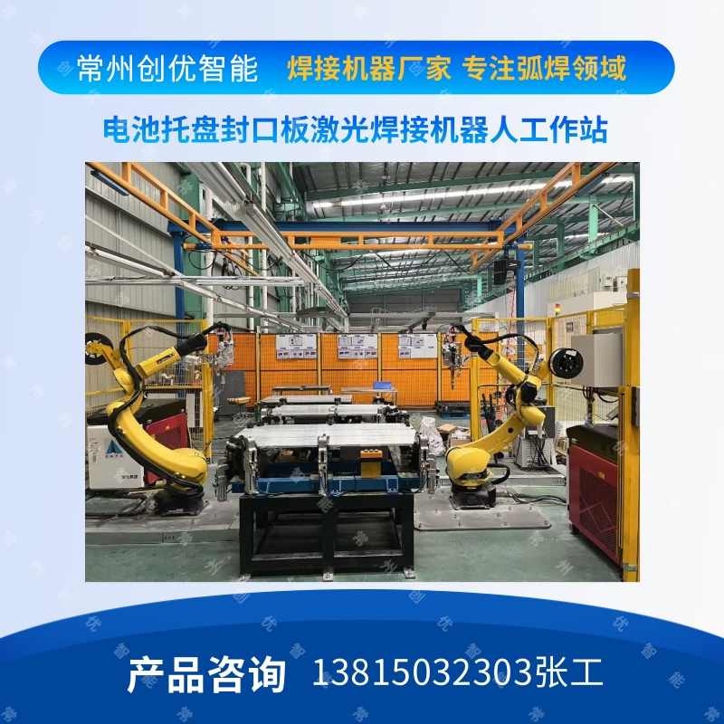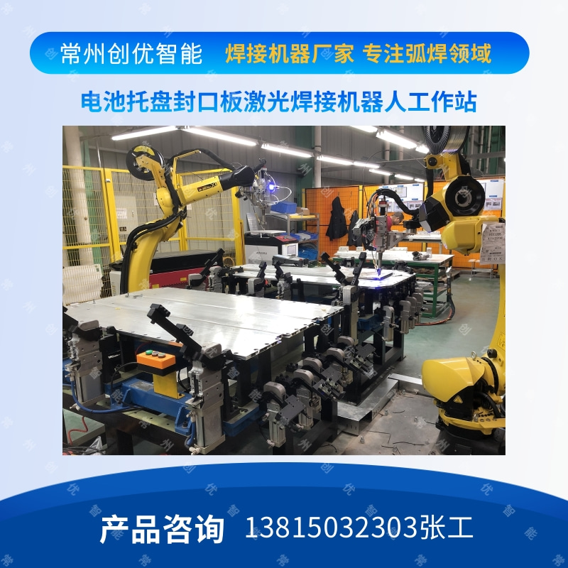 常州創(chuàng)優(yōu)智能裝備公司為新能源電車電池托盤封口板的焊接工藝提供了一套先進的解決方案,采用高性能的激光焊接機器人。
